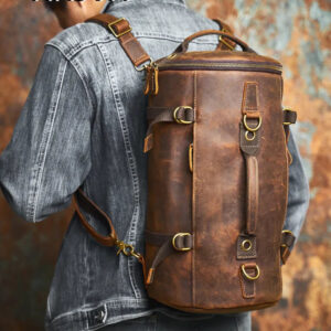 NASVA Genuine Leather Men’s Multifunctional Bag Vintage Backpack Crossbody Handbag Tote Cylinder Bag